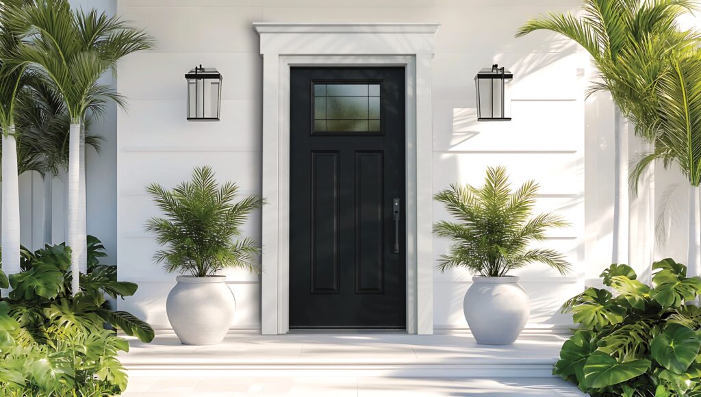 According to our latest sales data, the most popular Therma-Tru PrismaGuard paint colors are Obsidian and Alpine, a striking black and crisp white that perfectly reflect today’s shift toward modern neutrals. These versatile hues allow your front door to seamlessly complement a wide range of exterior color palettes. When it comes to PrismaGuard stains, New Earth and Raven lead the way. New Earth delivers the warmth and richness of a classic wood tone, ideal for creating natural curb appeal. Meanwhile, Raven offers a dramatic, deep black finish that ties in effortlessly with darker trim, siding, or minimalist design themes. Together, these top-performing colors and stains highlight a strong consumer preference for timeless, adaptable finishes that elevate the look of any home while supporting current trends that blend bold accents with neutral exteriors.